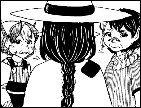 Inric's arrival silences the two combatants. Mathea and the man turn to face him.