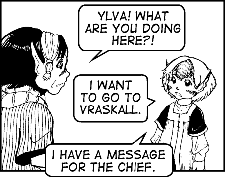 "I want to go to Vraskall," she says. "I have a message for the chief."