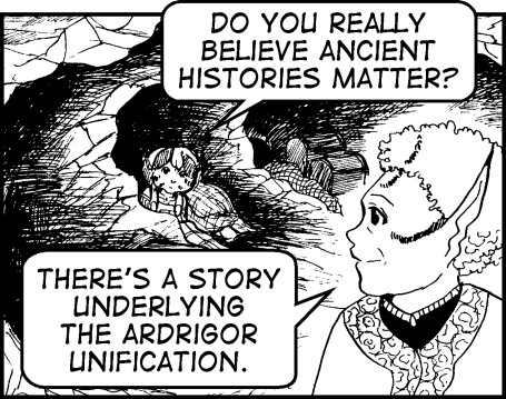 "Do you really believe ancient histories matter?" she challenges the Sage, who looks around with a smile.