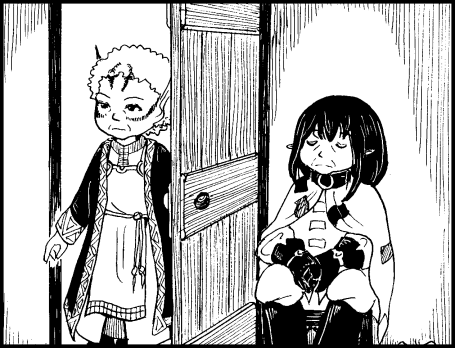Inric spends a short hour dozing in Magistra Colle's study, seated on her little stool and resting against the wall by the door, to be out of sight of any guard who might come in. But when the door opens it is only the Sage herself who comes through, shuts the door and then jumps in surprise at her visitor.