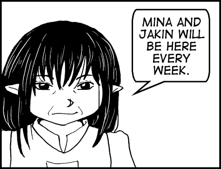 "Mina and Jakin will be here every week," Inric reminds her, and he is almost smiling.