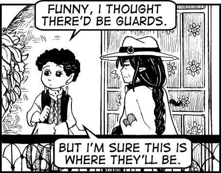 "Funny," she murmurs to Inric as they reach the first floor. "I thought there'd be guards. But I'm sure this is where they'll be." She turns to the first door, painted in shades of blue with delicate flowers on. "Can you unlock the doors?"
