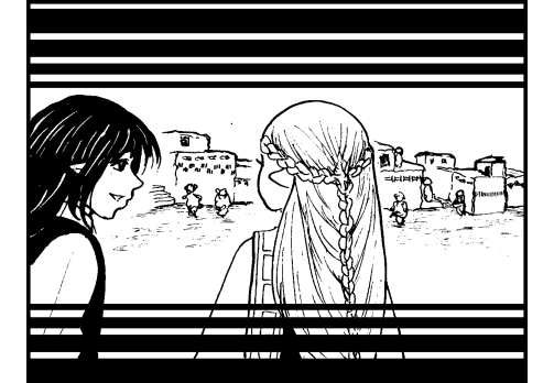 On the other side of the buildings, Copper is scampering over the plains into the distance. Inric follows.