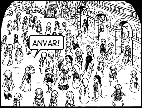 "Anvar!" He jumps and looks round. A broad smile greets him through the crowd. "You're here!" Orinithiel says delightedly. "I missed you at archiometry."