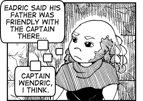 Wil sits in the cell - small, cold, cheerless, but cleaner than he might have expected - and ruminates on his situation. He's in the guardhouse, but he didn't recognise any of the guards who took him there. Might they be from Ashton? Eadric had said his father was friendly with the captain there. One Captain Wendric. This must all be a misunderstanding... unless they know about last night? He shakes his head as if to dislodge the thought, and at that point the door opens with a bang and another unfamiliar guard shouts his name.