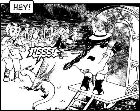 In the real world, Copper outruns Anvar to leap between Inric and a Broghan man who looks like he's about to interfere. Copper hisses and extends his threat display. Anvar knows what his uncle is trying, and any distraction would be fatal. He runs harder, arriving in time to back up the bookwyrm.